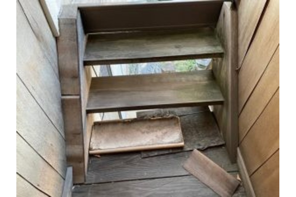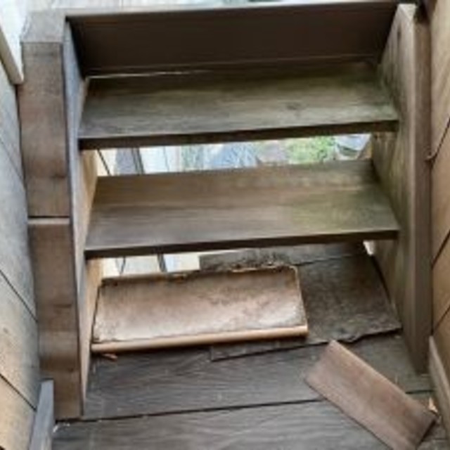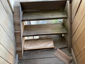 壊れかけていた木製の階段ですが?