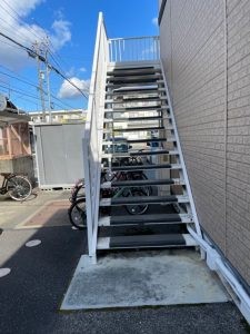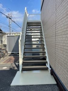 WORKS岡山市 中区 浜 アパート M様邸 鉄骨階段 土間塗装 長尺シート改修工事 鉄骨階段・手すり