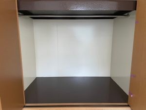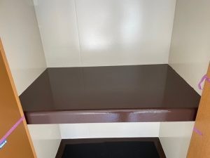 収納内の壁や棚が汚れたり、傷付いた為、塗装して欲しいとの事でご依頼がありました?