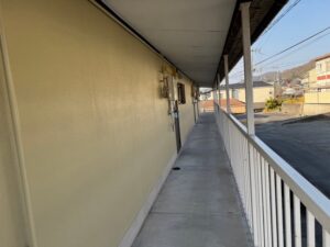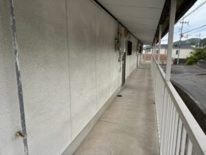 アパートの外壁で、遮熱型無機の塗り替え工事です☺️