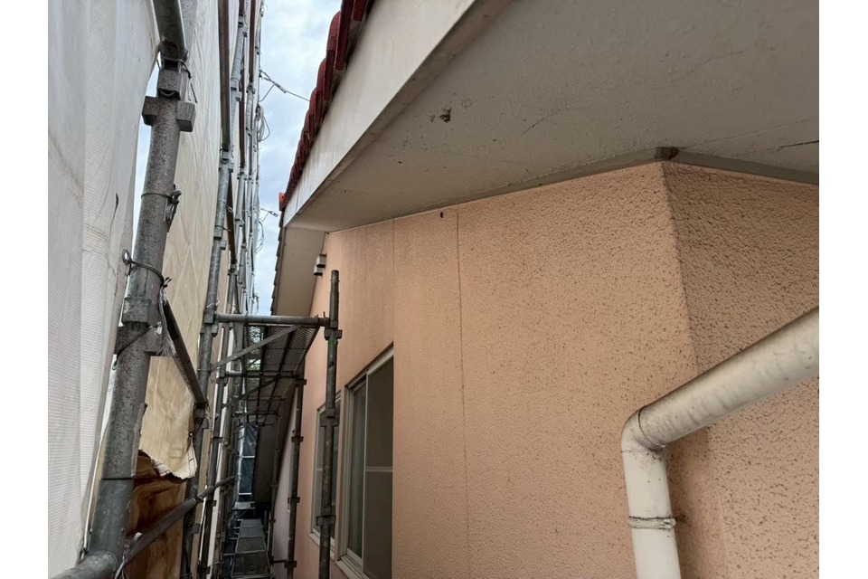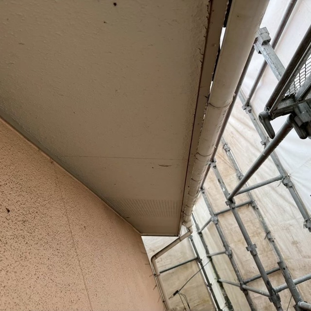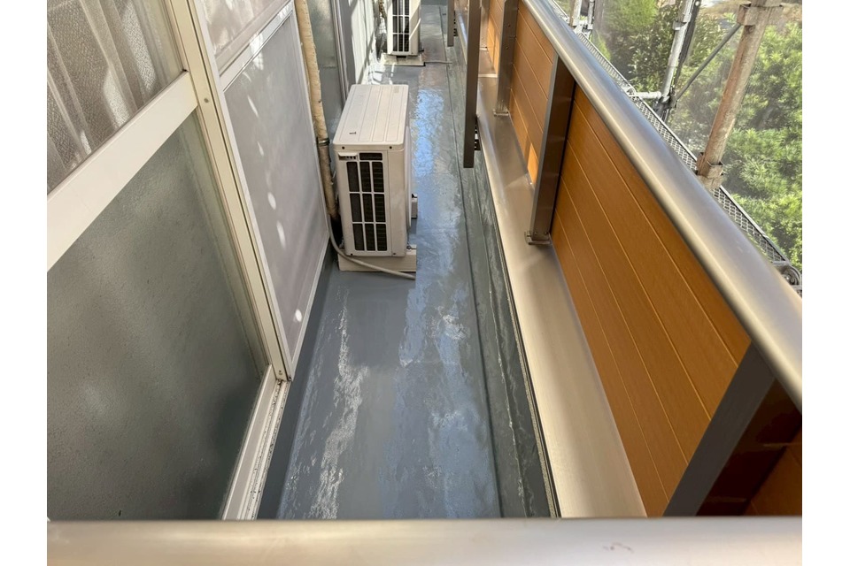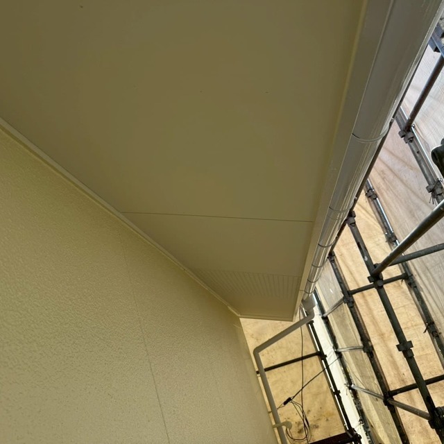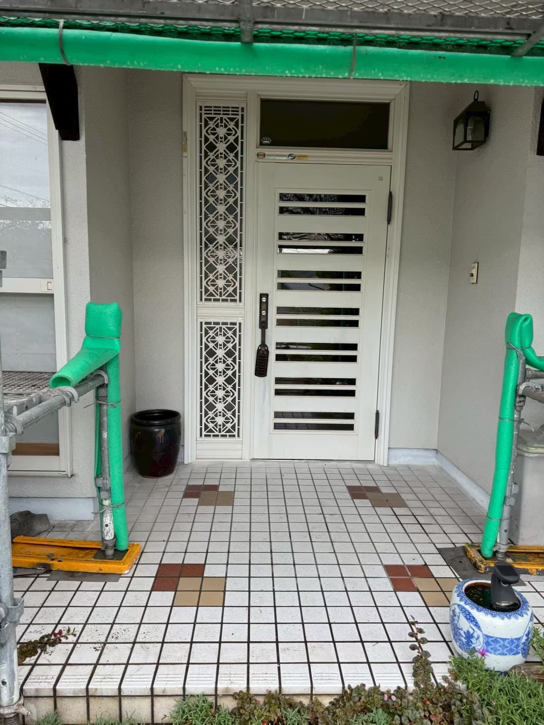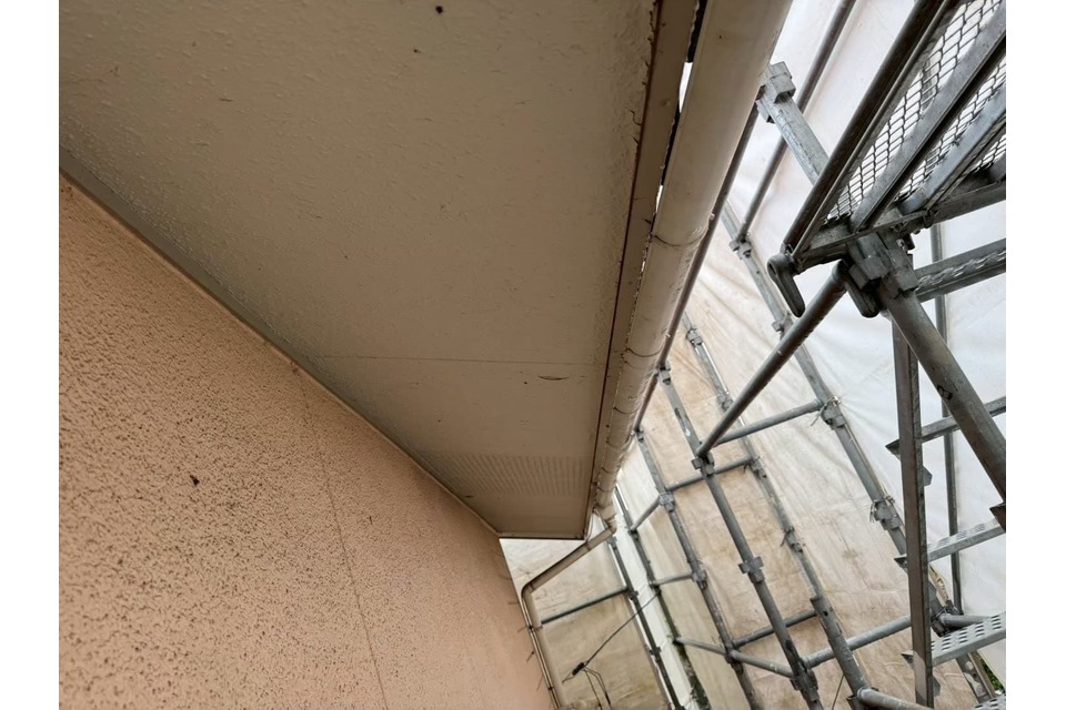 軒天やベランダの劣化が進んでいたため、軒天は大工工事後に塗装、ベランダは左官工事後に防水施工を実施し、下地からしっかりと補修しています。屋根・外壁ともに遮熱型無機塗料を使用し、超高耐久・超低汚染・遮熱効果を備えた長寿命仕様に。外壁はデザイン性にもこだわり、機能性と美観を両立した仕上がりとなりました。