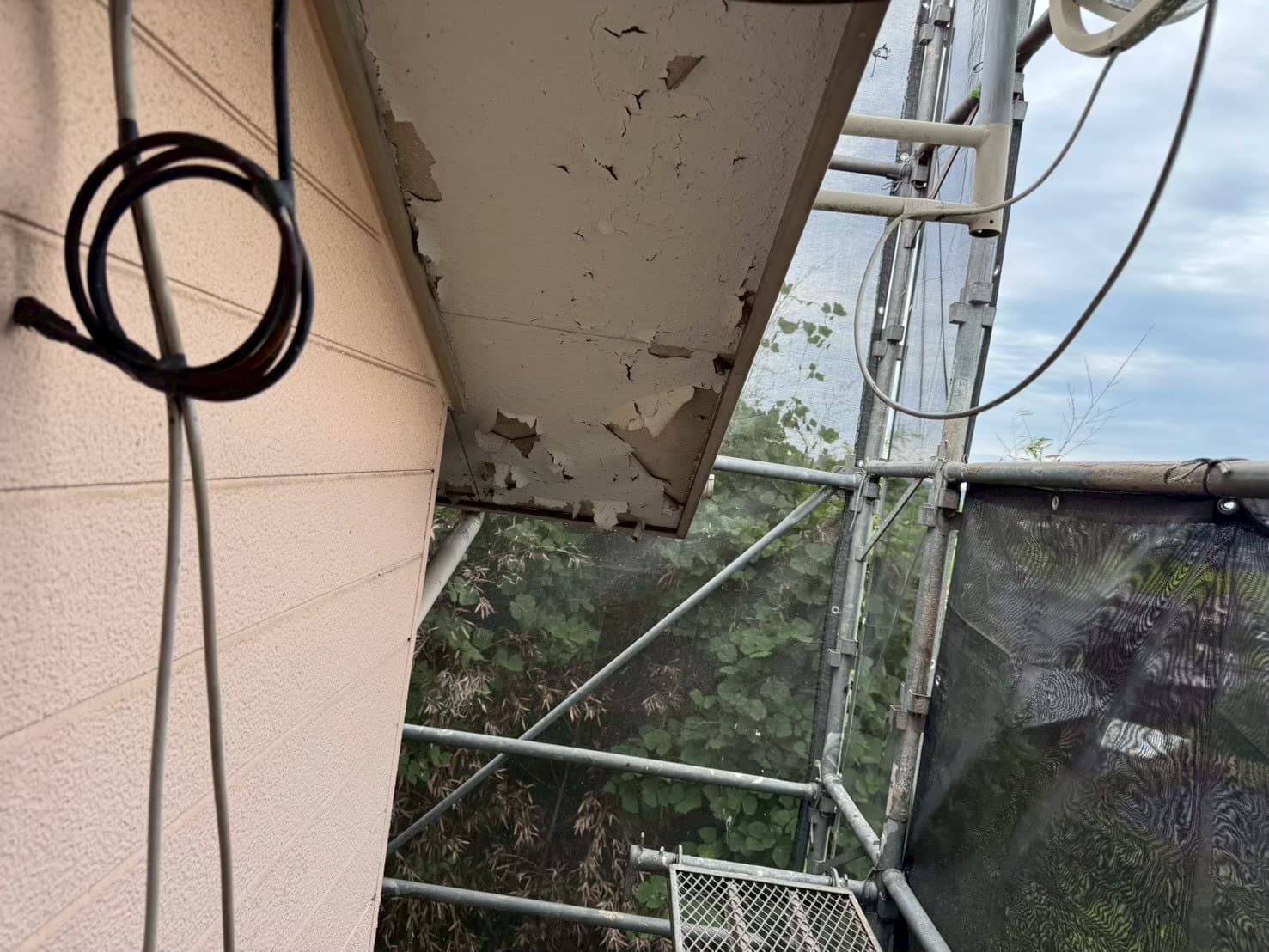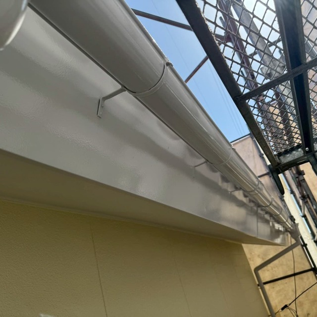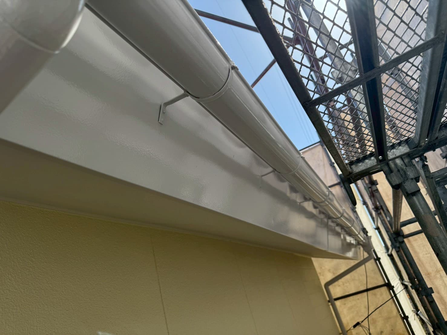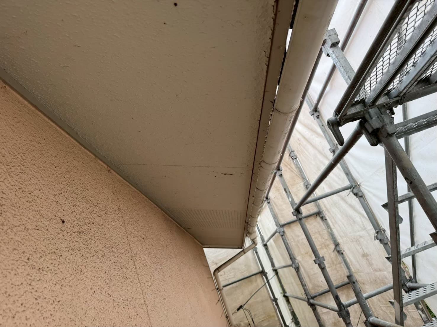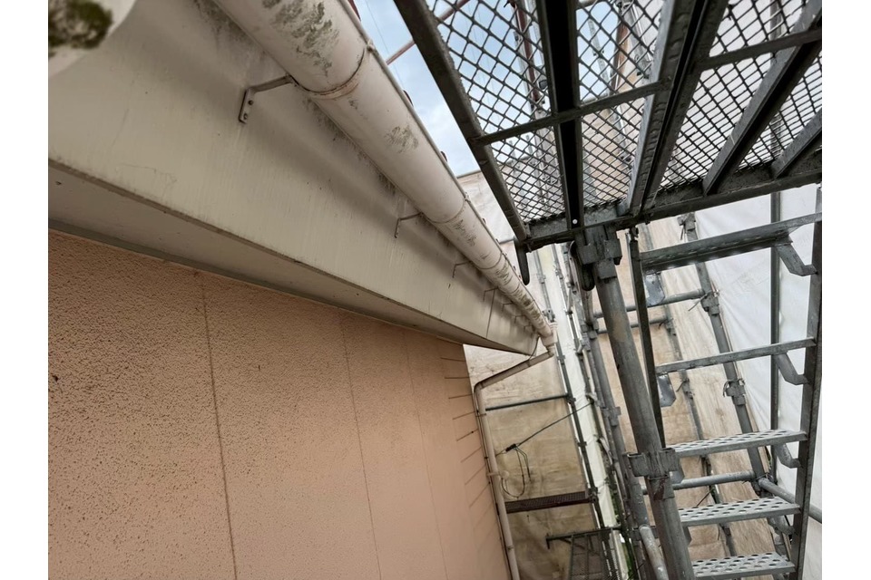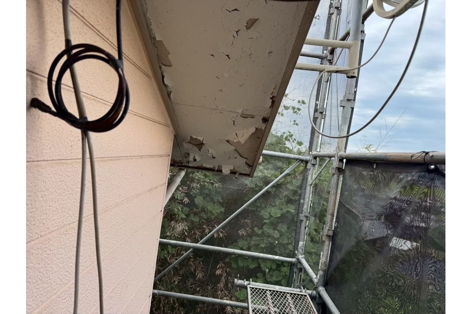 軒天やベランダの劣化が進んでいたため、軒天は大工工事後に塗装、ベランダは左官工事後に防水施工を実施し、下地からしっかりと補修しています。屋根・外壁ともに遮熱型無機塗料を使用し、超高耐久・超低汚染・遮熱効果を備えた長寿命仕様に。外壁はデザイン性にもこだわり、機能性と美観を両立した仕上がりとなりました。