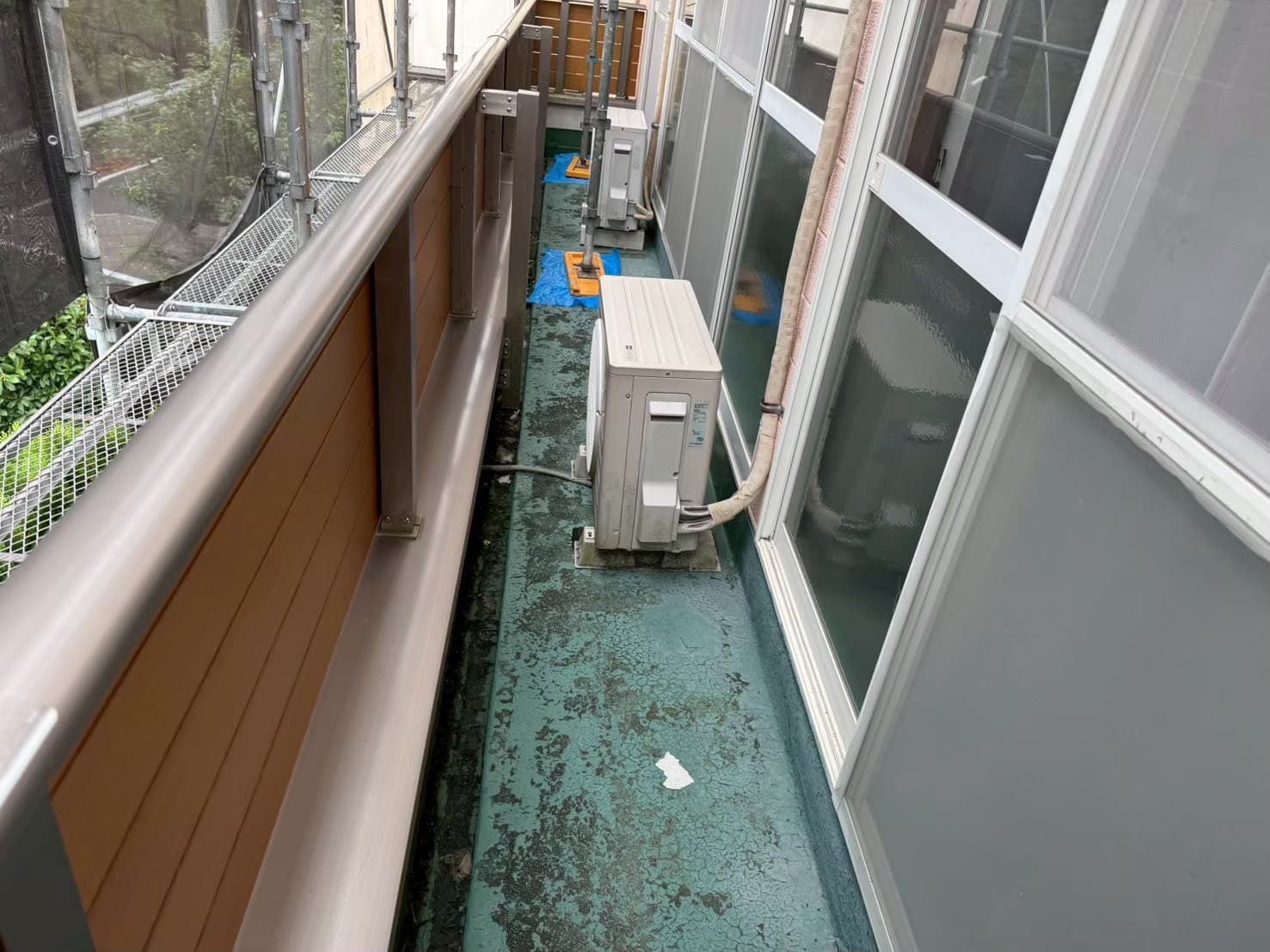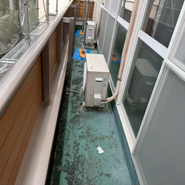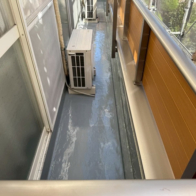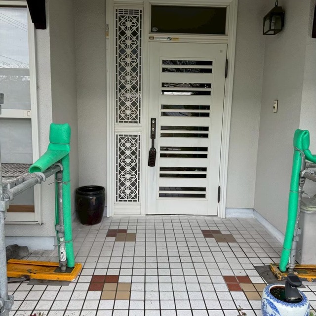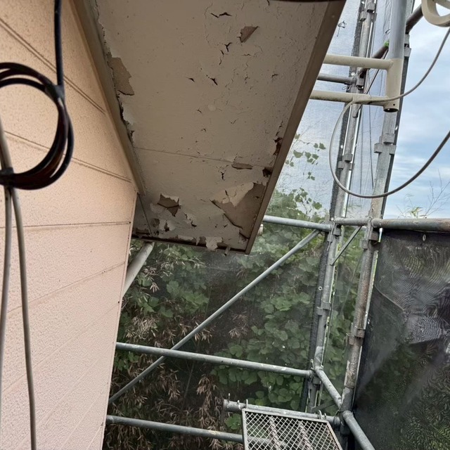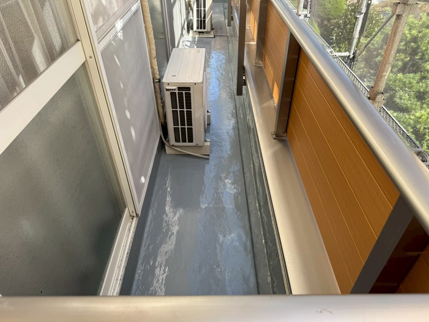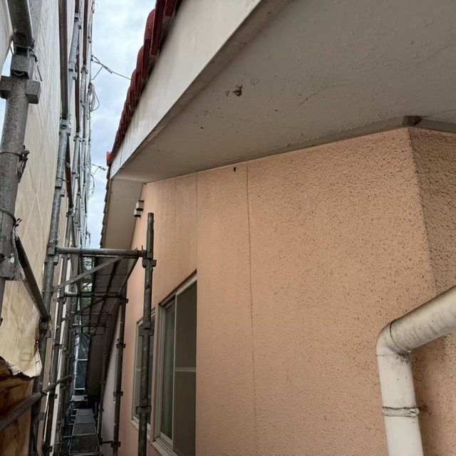 軒天やベランダの劣化が進んでいたため、軒天は大工工事後に塗装、ベランダは左官工事後に防水施工を実施し、下地からしっかりと補修しています。屋根・外壁ともに遮熱型無機塗料を使用し、超高耐久・超低汚染・遮熱効果を備えた長寿命仕様に。外壁はデザイン性にもこだわり、機能性と美観を両立した仕上がりとなりました。